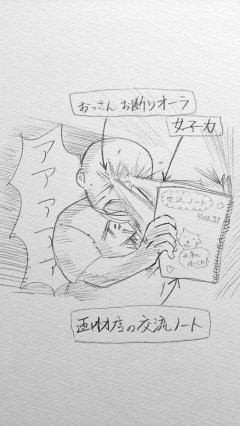 画材店で買い物をした折に、交流ノートが置かれているのを見掛け、折角だから一筆何か描くかと頁を捲った所、あまりのアウェイ感に何も描けずに撤退しました。