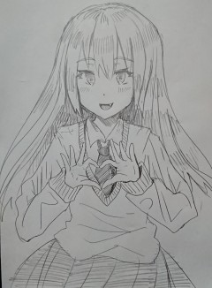 手でハート。